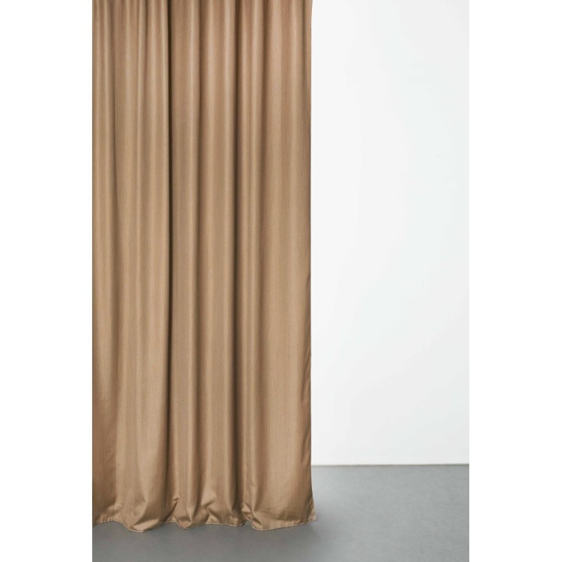 Плат с тъкана черна нишка за затъмнение в бежов цвят. Полиестерна материя с лека лъскавина, с максимална височина 280 см.