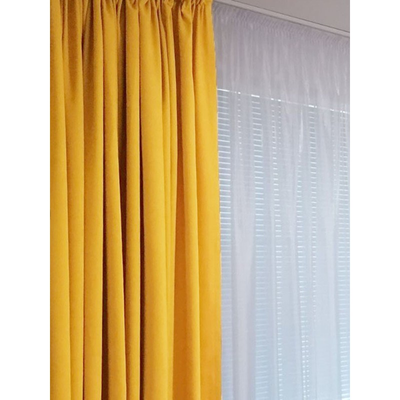 Плат за плътна завеса в модерен цвят горчица с галещо кадифено усещане.