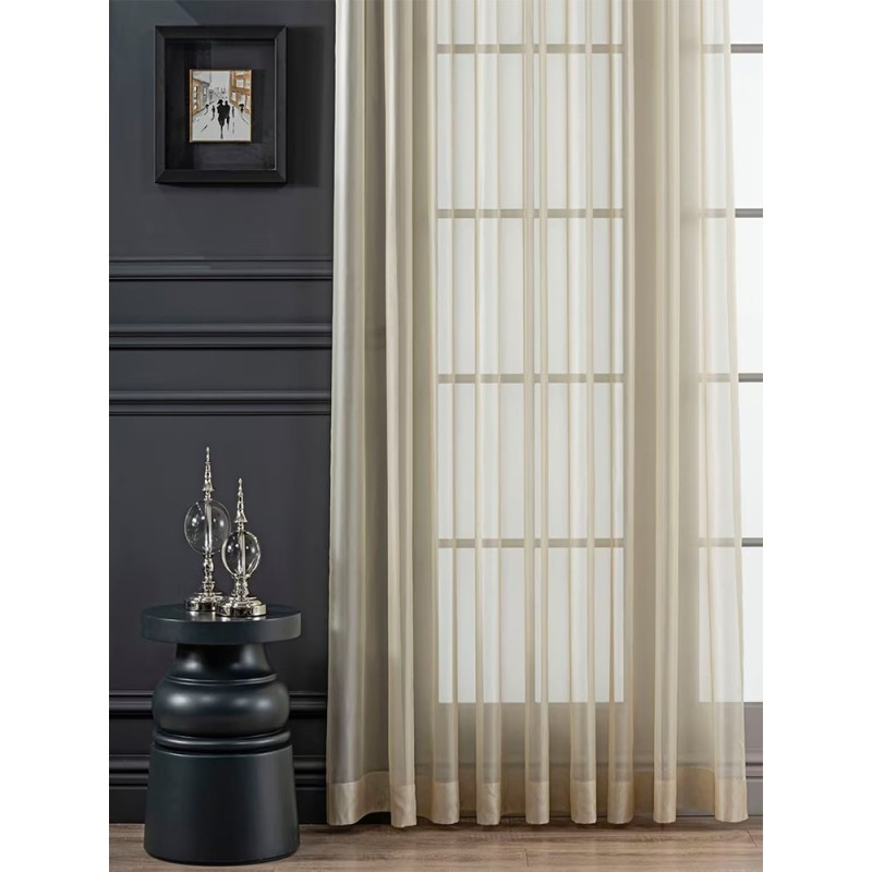 Прозрачна, ефирна и мека материя за перде с матов ефект в бежов опушен цвят, който добавя елегантност и стил в интериора. Придава нежен и съвременен вид на стаята, като преминава светлина и подчертава лекотата на пространството. Максимална височина на текстила 320см.